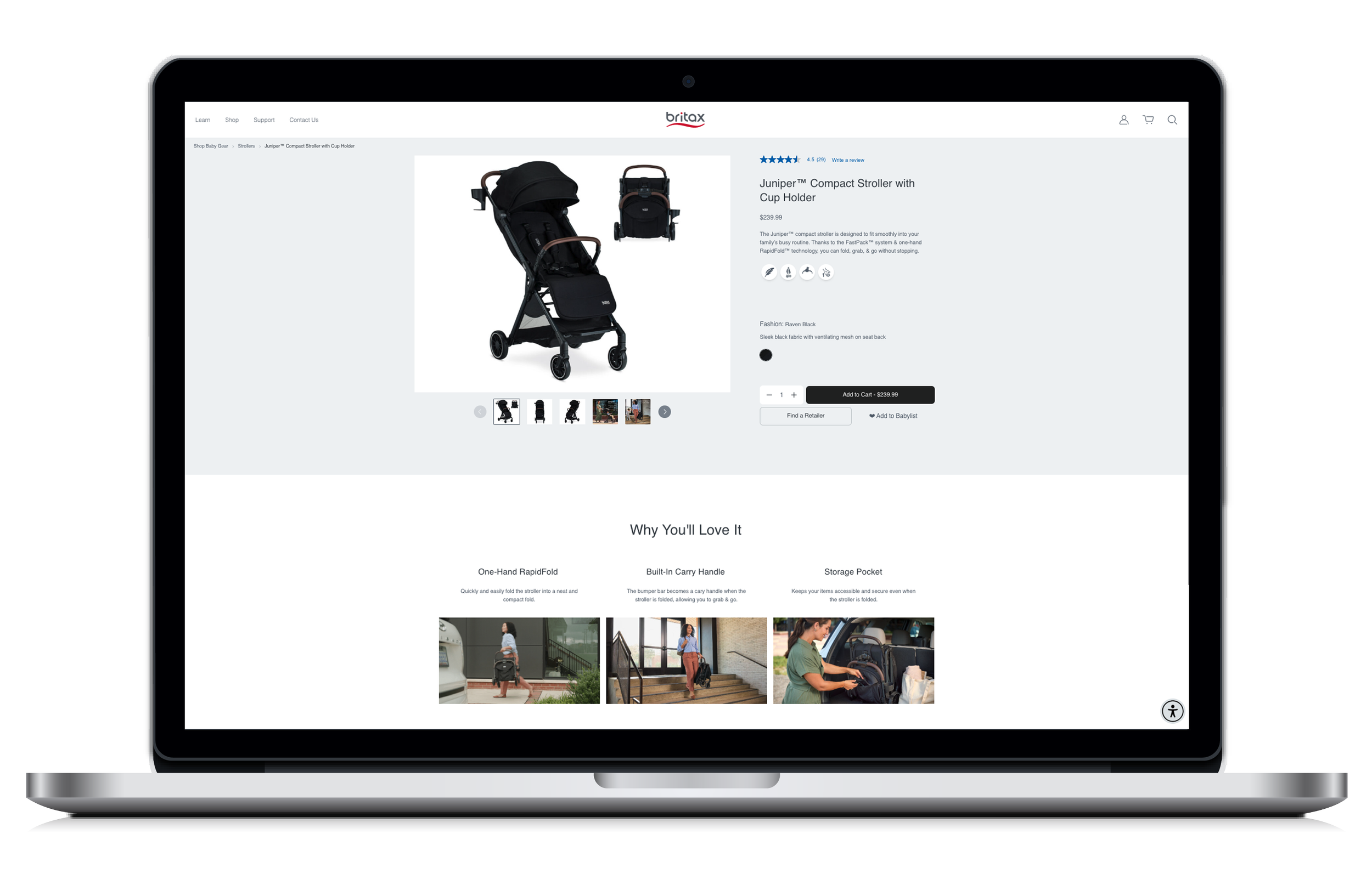Introduce the Britax Juniper compact stroller to consumers visiting the direct-to-consumer site (Britax.com) and retailer sites through various marketing channels.